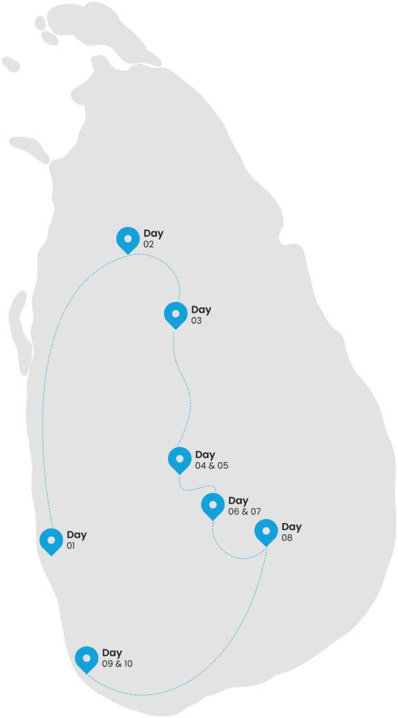 Welcome to Sri Lanka! Upon arrival at Bandaranaike International Airport, you’ll be greeted by your tour representative and transferred to Colombo. After check-in, enjoy a relaxed evening walk through the city’s historic quarters, including the colonial-era Dutch Hospital Precinct and bustling Galle Face Green. Overnight stay in Colombo.